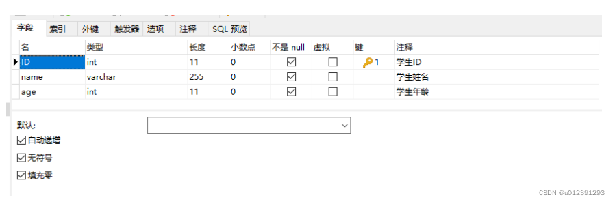 `id` int(10) NOT NULL AUTO_INCREMENT COMMENT '学号',