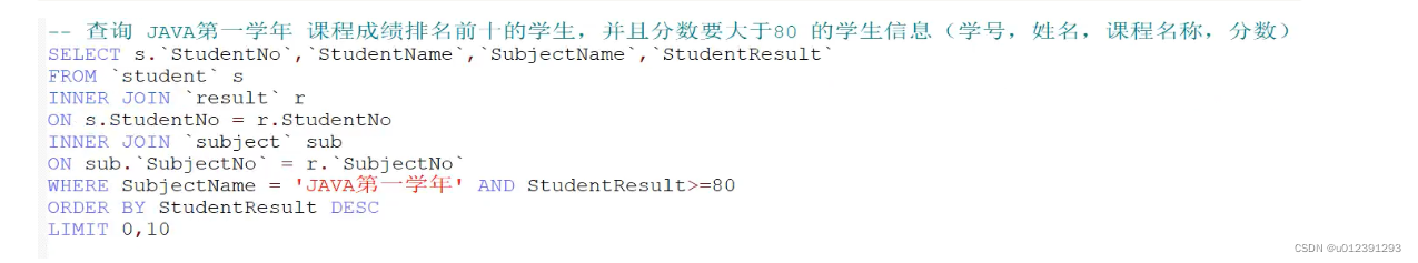 -- 单列排序 ASC 默认升序,降序后面接"DESC"即可。