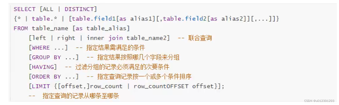 DQL:数据库查询语言