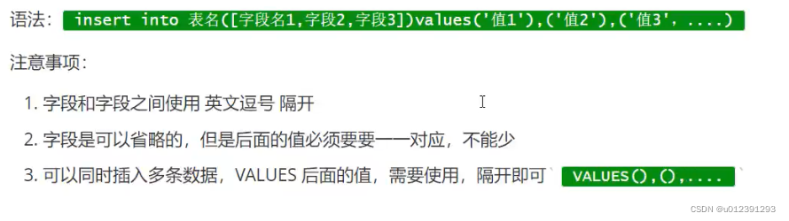 -- INSERT INTO tablename(列名…) VALUES(列值);