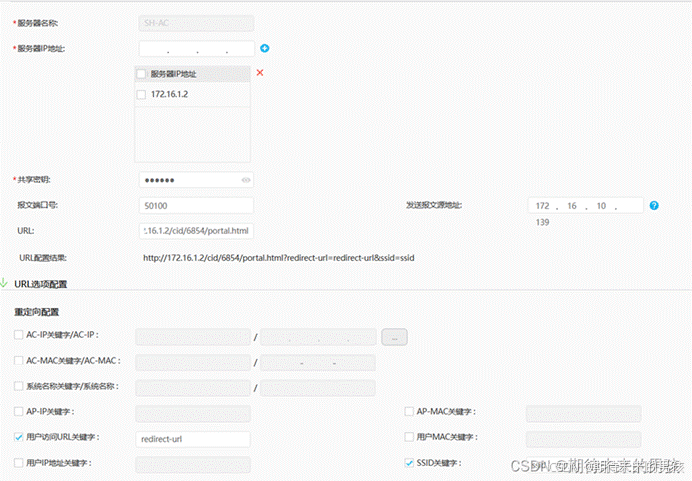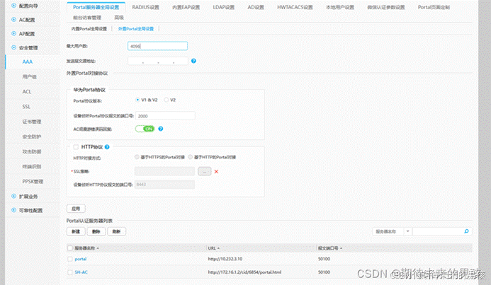 1)配置portal模板 新建SH_AC,选择外置Portal服务器,选择portal服务器