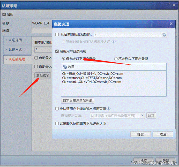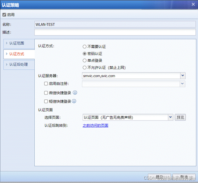 1、编辑【用户认证管理】-【用户认证】-【认证策略】