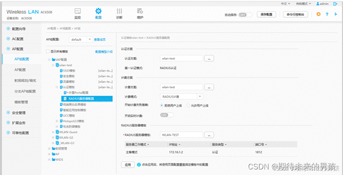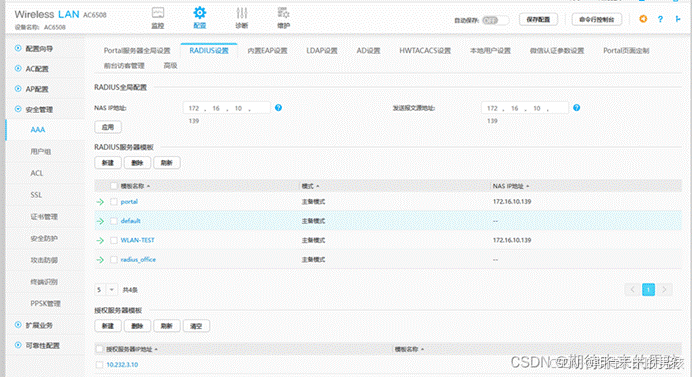 2)配置Radius模板 新建SH_AC,选择RADISU服务器模板