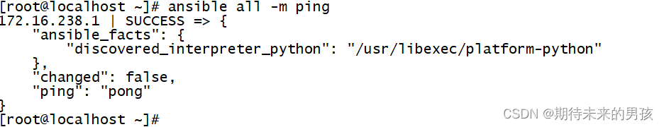 ansible "*" -m ping (*表示所有主机)