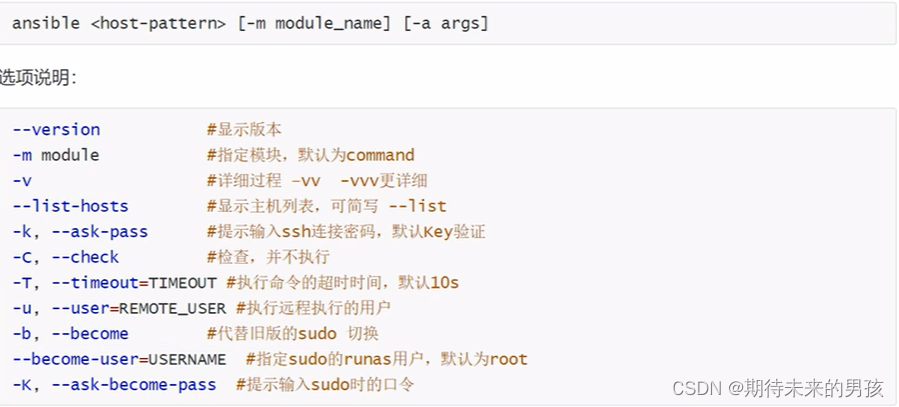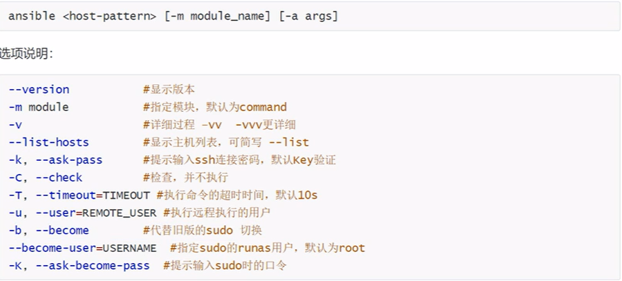 查看命令的用法ansible --help