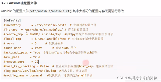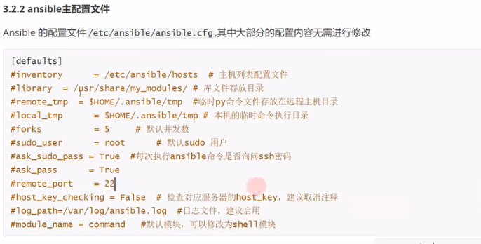 /etc/ansible/ansible.cfg 主配置文件,配置ansible工作特性(一般无需修改)