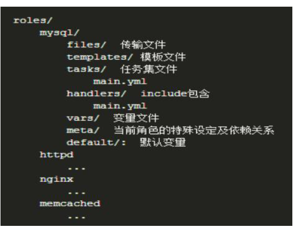 roles能够根据层次型结构自动装载变量文件、tasks以及handlers等。