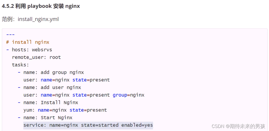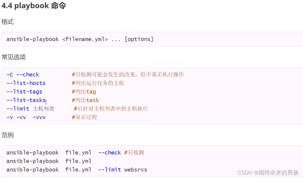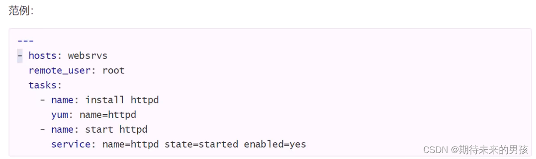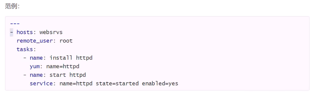 > 次行开始正常写Playbook的内容,一般建议写明该Playbook的功能