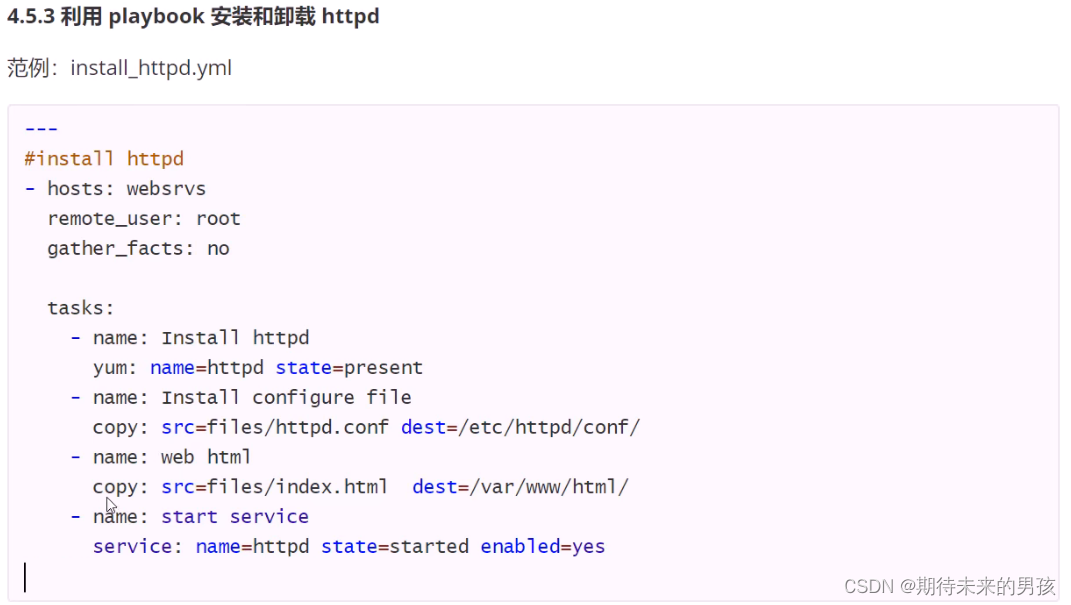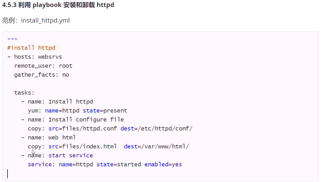 yum: name=httpd yum模块:安装httpd