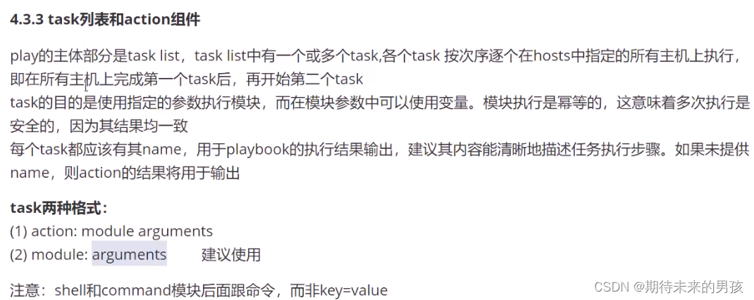 > 一个完整的代码块功能需最少元素需包括 name 和 task