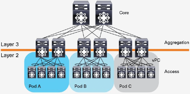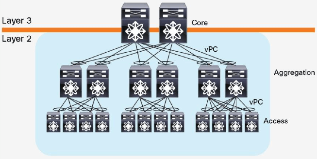 vPC技术在相对较小的数据中心环境中运行良好,在这种环境中,大部分流量都是客户机到服务器之间的南北向流量。