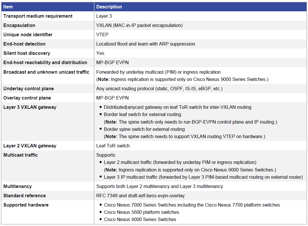 表 2 Cisco VXLAN flood-and-learn 网络特性