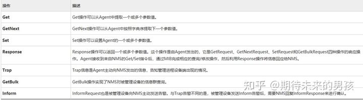 为了简化起见,SNMP操作今后叫做Get、GetNext、Set、Response、Trap、GetBulk和Inform操作。