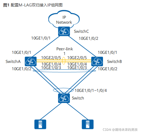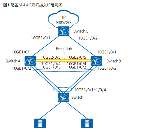 如图1所示,通过配置M-LAG双归接入IP网络可以满足以下要求:
