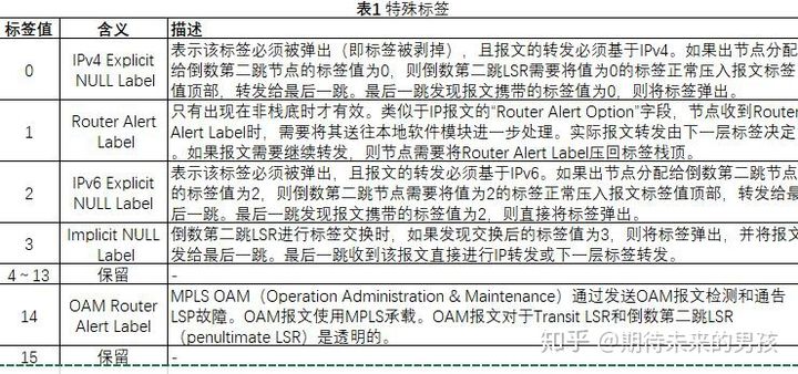 标签(Label)是一个短而定长的、只具有本地意义的标识符,用于唯一标识一个分组所属的FEC。在某些情况下,例如要进行负载分担,对应一个FEC可能会有多个入标签,但是一台设备上,一个标签只能代表一个FEC。