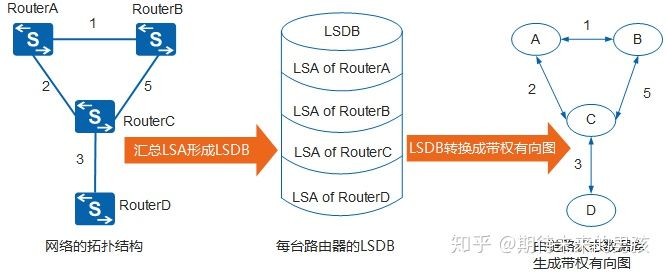 总之,LSDB保证路由器能够时刻掌握全网的拓扑机构,SPF算法保证路由器能够迅速计算出到达目的网络的最短路径。