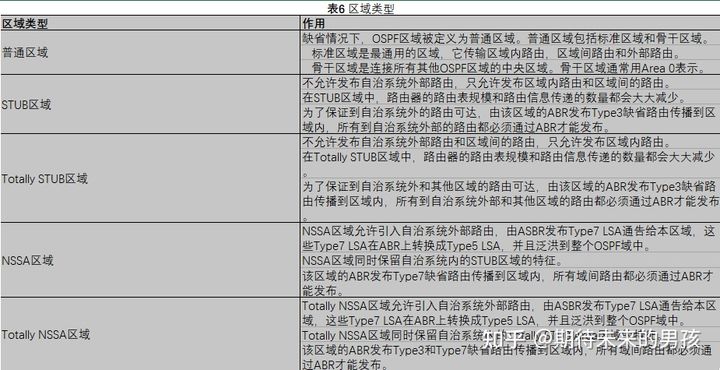 一个区域内所有路由器上配置的区域类型必须保持一致。OSPF在Hello报文中使用N-bit来标识路由器支持的区域类型,区域类型选择不一致的路由器不能建立OSPF邻居关系。