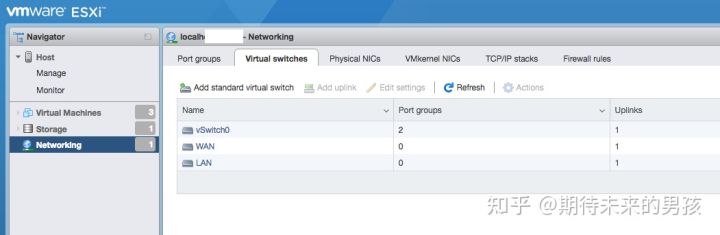 添加两个虚拟交换机,一个用于 WAN,另一个用于 LAN。对于上行链路,选择两个单独的可用端口。