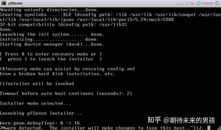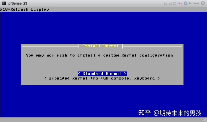 pfSense 软件安装程序会自动启动。选择“接受这些设置”