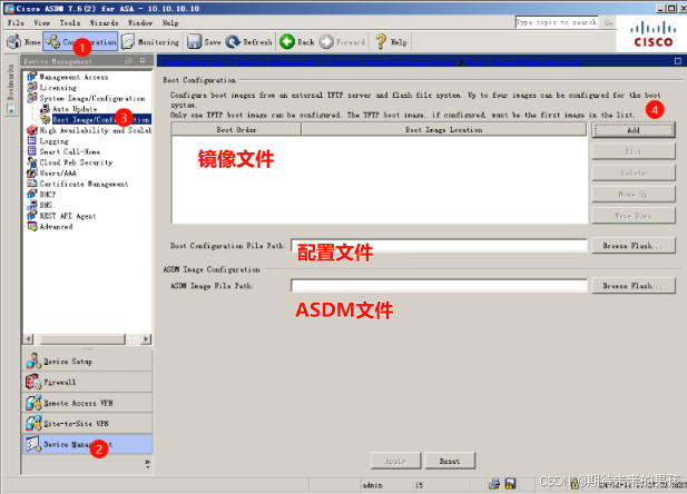 配置ASA启动OS:boot system disk0:/asa962-k8.bin