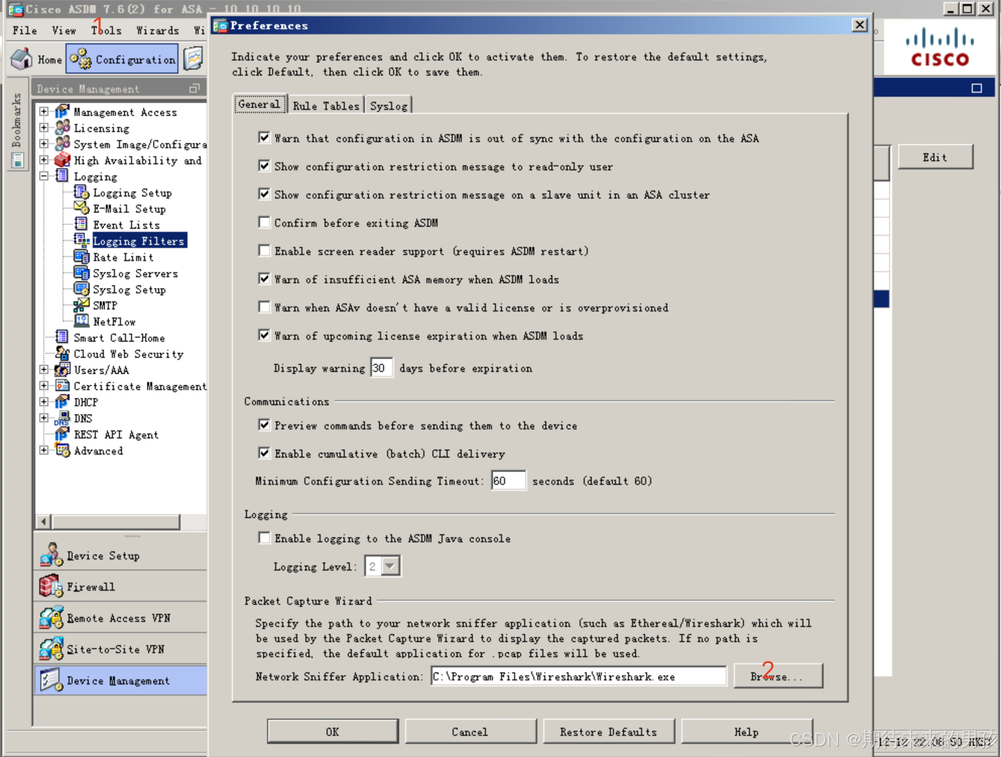 配置ASDM文件:asdm image disk0:/asdm-762-206.bin