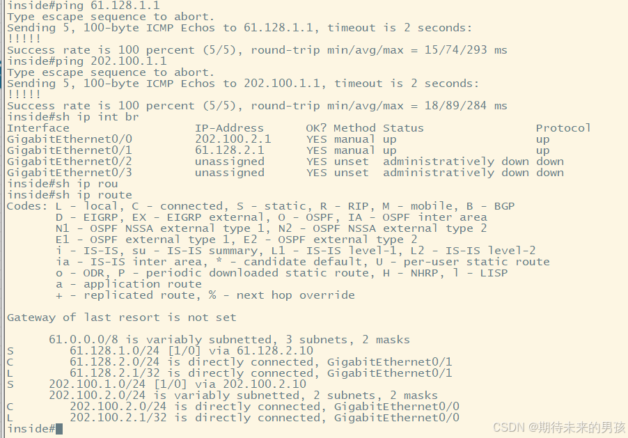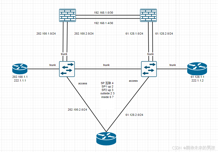 2.因为互联网出现了异步路由,返回流量从ASA2的61.128.1.10返回