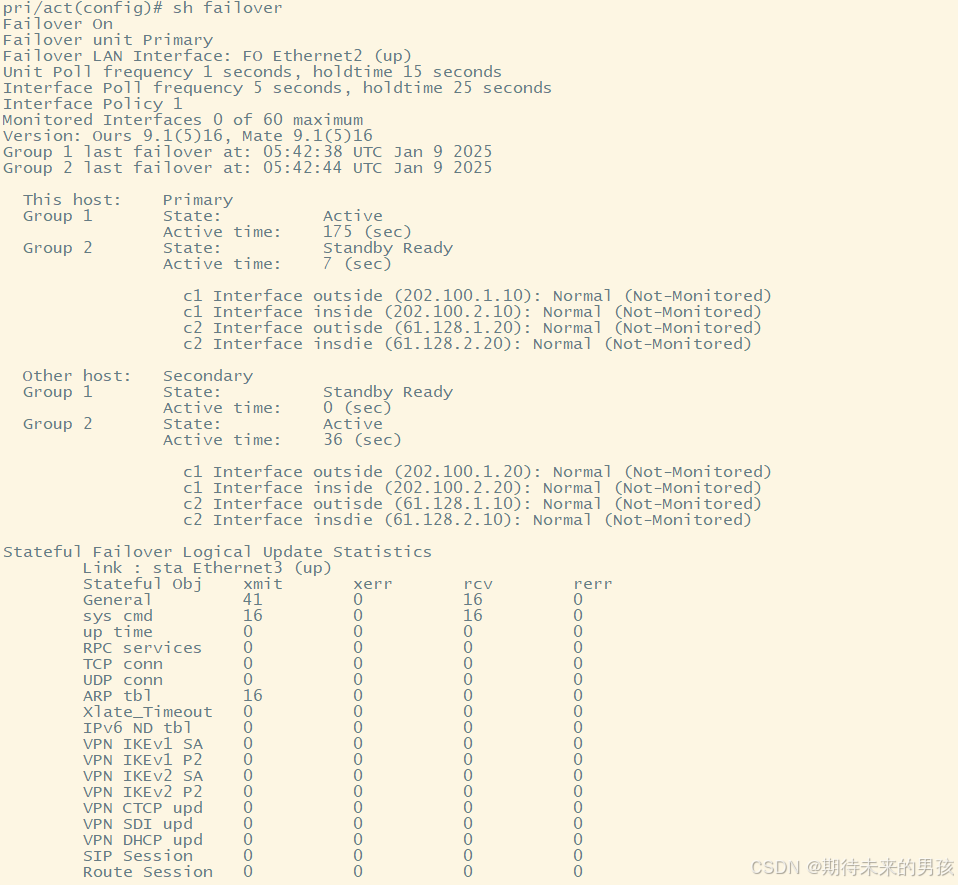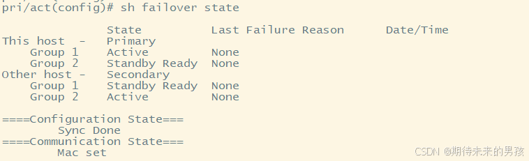 这些输出结果是假设安全设备在FO组里都是健康的,如果不是,那么健康的子墙在一个FO组里将变成active.