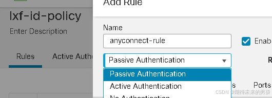Active Authentication 主动认证 主动弹窗让用户输入认证信息 Passive Authentication 被动认证 认证信息从第三方获得 创建VPN 策略
