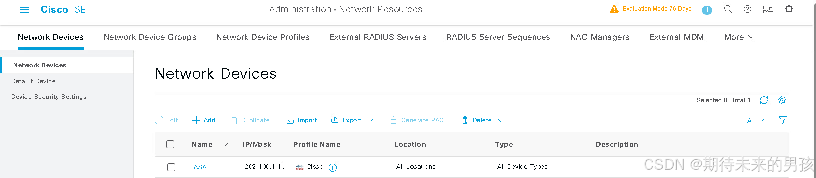 ASA配置 ASA 集成 ISE ASA# more system:running-config | begin aaa-ser # more 查看密码明文 aaa-server ISE protocol radius aaa-server ISE (outside) host 192.168.1.241 key cisco SSL VPN 配置 access-list Split standard permit 192.168.1.0 255.255.255.0 access-list Split standard permit 10.1.1.0 255.255.255.0 ip local pool sslvpn 172.16.1.1-172.16.1.100 mask 255.255.255.0 webvpn enable outside anyconnect image disk0:/anyconnect-win-4.4.02034-webdeploy-k9.pkg 1 anyconnect profiles IKEv2 disk0:/ikev2.xml anyconnect enable tunnel-group-list enable group-policy sslvpn-policy internal group-policy sslvpn-policy attributes dns-server value 192.168.1.244 vpn-tunnel-protocol ikev2 ssl-client ssl-clientless split-tunnel-policy tunnelspecified split-tunnel-network-list value Split default-domain value qytang.com address-pools value sslvpn tunnel-group sslvpn-policy type remote-access tunnel-group sslvpn-policy general-attributes authentication-server-group ISE authorization-server-group ISE accounting-server-group ISE tunnel-group sslvpn-policy webvpn-attributes group-alias Employee_Group enable crypto ikev2 policy 10 encryption aes-256 integrity sha group 2 prf sha lifetime seconds 86400 crypto ikev2 enable outside client-services port 443 crypto ikev2 remote-access trustpoint sslvpn crypto ipsec ikev2 ipsec-proposal ikev2_proposal protocol esp encryption aes-256 protocol esp integrity sha-1 crypto ipsec security-association pmtu-aging infinite crypto dynamic-map dymap 10 set ikev2 ipsec-proposal ikev2_proposal crypto map sslvpn 1000 ipsec-isakmp dynamic dymap crypto map sslvpn interface outside ISE配置