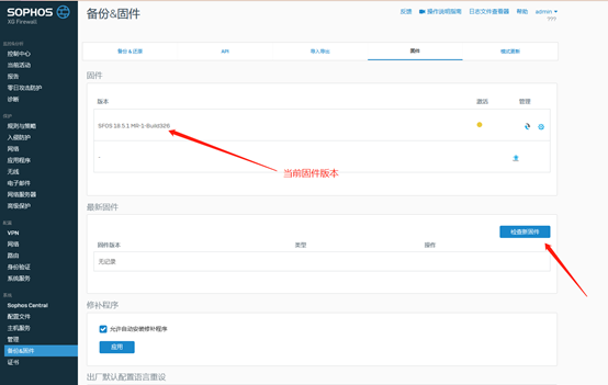 设备型号和固件版本需要完全一致,如果固件版本不一致,需要在线进行升级 如下图