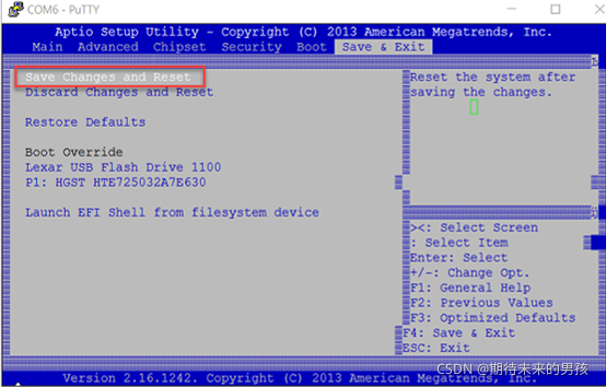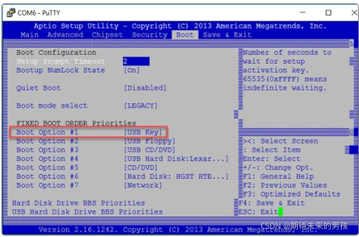 使用putty连接SOPHOS(比特率38400),插上u盘启动盘,重启SOPHOS,开机过程中按Delete键进入BLOS,将U盘启动盘作为优先启动,
