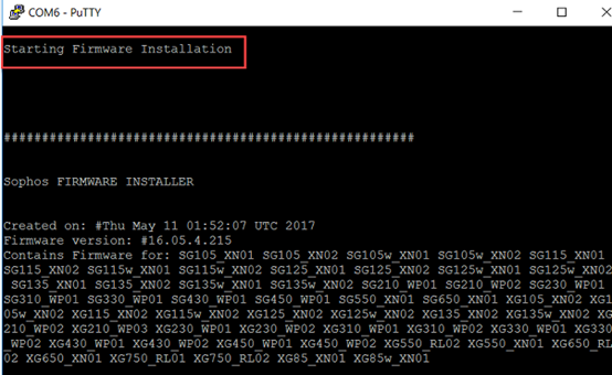 如果在线无法将两台SOPHOS固件版本升级一致,需要在官网下载镜像包 然后用U盘做系统启动盘 将SOPHOS通过COM口(console口)连接,使用putty工具。