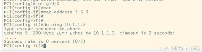 - 修改PC1的MAC地址为自定义地址,并查看ARP监控效果。
