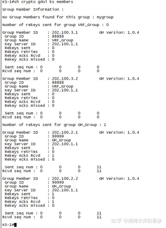 在组播Rekey的过程中,KS创建一个rekey消息并发送该消息到预先配置好的组播组地址。每一个加入这个组播组的GM,在向KS注册的时候都会受到这个rekey消息的拷贝。