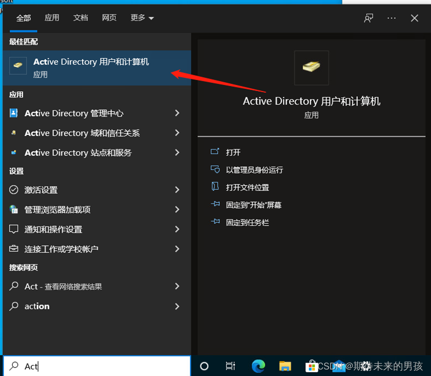 用分支机构域管理员账号登录计算机,win+Q搜索 Active打开AD编辑器