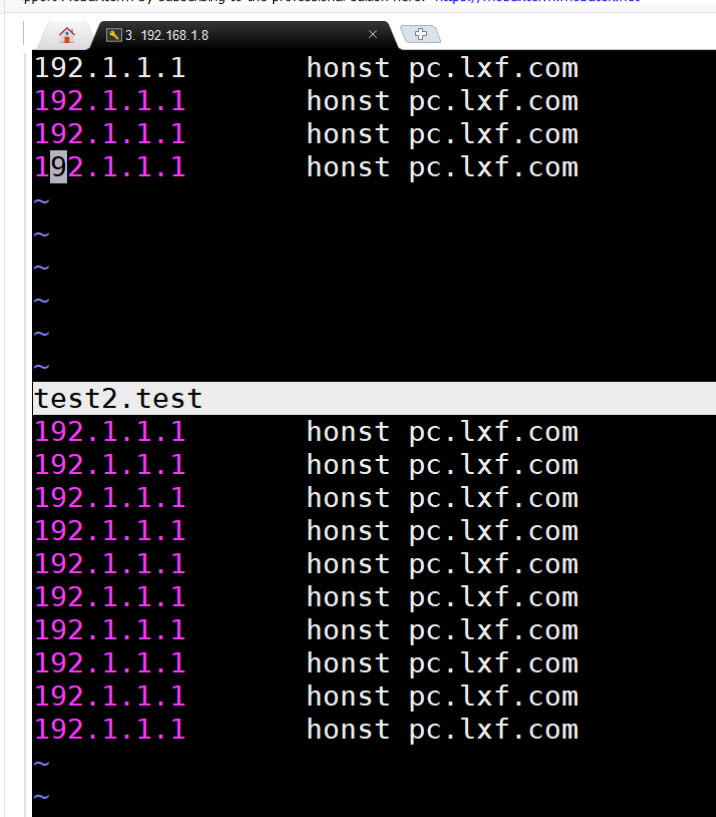 #tee 输入到文件同时输出到屏幕 [root@192 ~]# ping 192.168.1.1 | tee ping.log PING 192.168.1.1 (192.168.1.1) 56(84) bytes of data. 64 bytes from 192.168.1.1: icmp_seq=1 ttl=64 time=1.54 ms 64 bytes from 192.168.1.1: icmp_seq=2 ttl=64 time=2.08 ms 64 bytes from 192.168.1.1: icmp_seq=3 ttl=64 time=1.95 ms ^C [root@192 ~]# ll total 16 -rw-------. 1 root root 1377 Mar 22 05:13 anaconda-ks.cfg -rw-------. 1 root root 1377 Mar 26 20:38 anaconda-ks.cfg.bk -rw-r--r--. 1 root root 228 Mar 27 00:20 ll.log drwxr-xr-x. 2 root root 50 Mar 27 00:18 mounttest -rw-r--r--. 1 root root 227 Mar 27 00:35 ping.log [root@192 ~]#